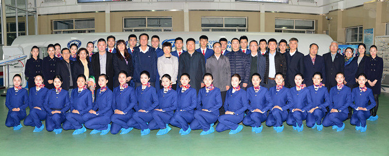南航领导一行首先来到旅游与人文艺术学院空乘专业航空舱实训室。通过介绍了解了空乘专业的基本情况,校企双方领导在航空仓内切身感受了一次空乘专业学生的“模拟服务”,李绍举对我校空乘专业学生的表现给予了很高的评价,认为我校学生的个人素质和专业技能已经达到了正式空乘人员的标准。