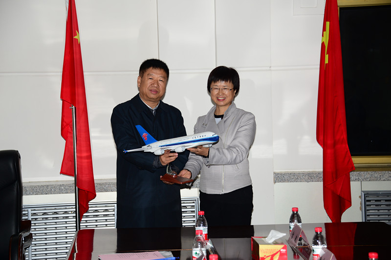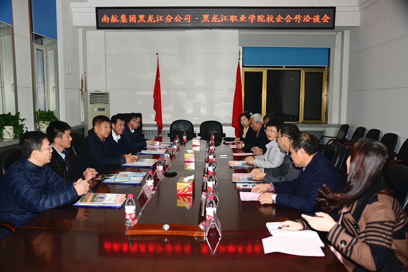 10月14日下午,中国南方航空股份有限公司黑龙江分公司总经理李绍举、副总经理刘杰率地面服务保障部经理宋民、办公室主任辛奇和人力资源部经理王今朝来我校洽谈校企合作事宜。校长于沐琳、副校长王明海热情接待了南航领导一行。