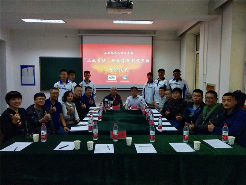 9月28日,电气工程学院工业机器人技术专业2018级“工业学徒”现代学徒制试点班开班仪式顺利举行。哈工大机器人集团华粹智能装备有限公司总经理陆洋、工程师邢方怀、钟鸣、王炳尧、王帅、高文超、王浩任。电气工程学院院长敖冰峰、副院长李焕然、副院长田浩鹏,工业机器人技术教研室主任鲍敏及教研室全体成员出席此次开班仪式。