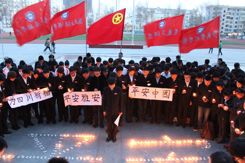 4月20日8时2分,在四川省雅安市芦山县(北纬30.3度,东经103.0度)发生7.0级地震。灾情一经传出,牵动了龙职学子们的心。4月20日晚,黑龙江职业学院在校园里举行了祈福活动,为雅安地震灾区同胞祈福,为地震中死难者默哀。活动分为介绍灾区情况、同学发表倡议、集体祝祷默哀三部分。