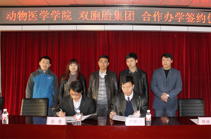 4月26日,学院动物医学学院与双胞胎集团举办校企合作签约暨第二期“双胞胎特色班”开班仪式。