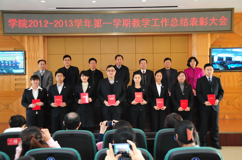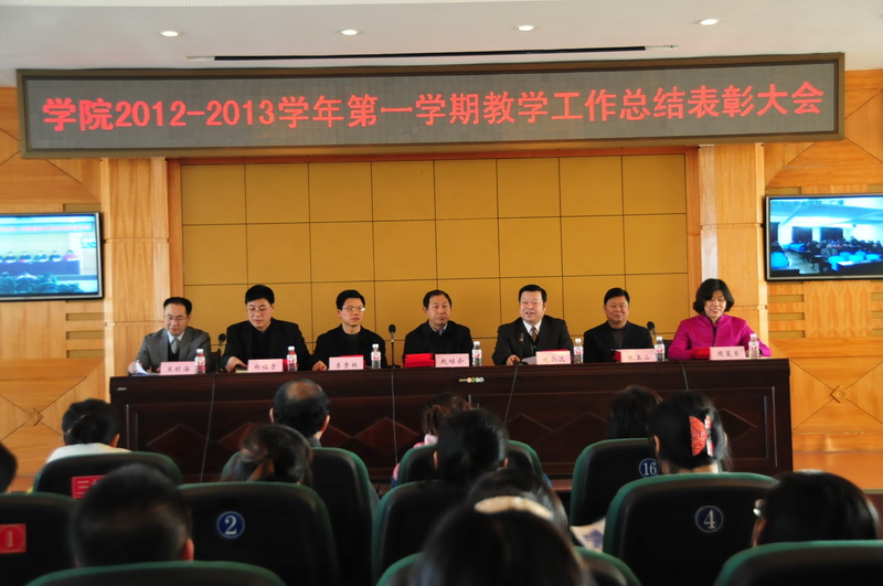 2012年12月26日,学院召开2012-2013学年第一学期教学总结表彰大会,学院领导班子成员及教师、中层干部等200多人参加了本次会议。会议由刘公远副院长主持。