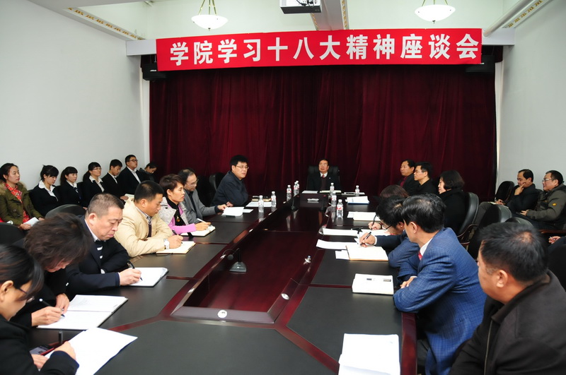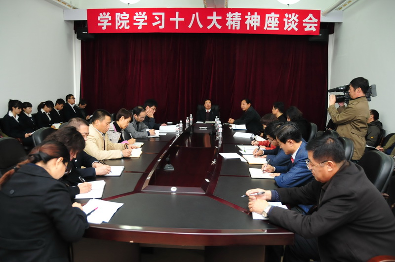 下午,在党委会议室,学院召开了学习党的十八大精神座谈会。学院党委书记冯玉龙,院长赵继会,副院长李贵林、郑福贵,纪委书记周莲香,黑龙江职业学院副院长王明海和与会的干部教师学生代表共同围绕大会报告畅谈了体会和感受,拉开了我院学习贯彻十八大报告精神系列活动的序幕。冯玉龙书记主持座谈会。