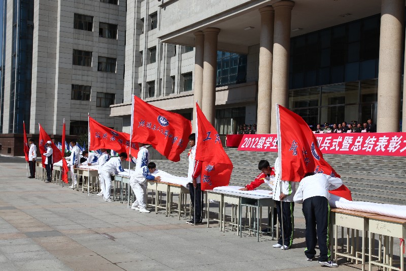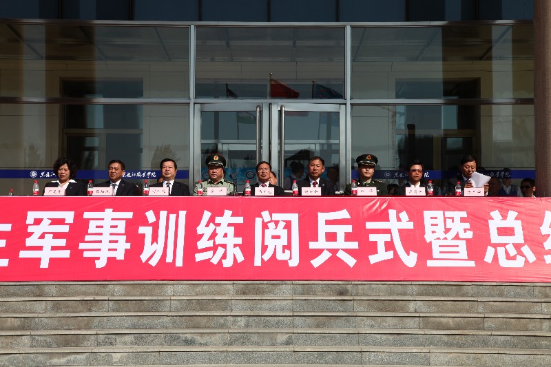 9月20日,我院2012级新生军事训练阅兵式暨总结表彰大会在一校区广场隆重举行。中国人民解放军65426部队副参谋长金辉上校,省军区军训办参谋韩峰少校,学院党委书记冯玉龙,院长赵继会,副院长刘公远、李贵林、张培斌,副书记张玉山,纪委书记周莲香,黑龙江职业学院副院长刘春起,副书记李固江,副院长南文杰等同志出席大会。各二级学院及有关部门负责人和全体新生一同参加了大会。
