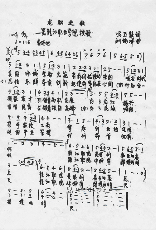 龙职之歌——黑龙江职业学院校歌,词作者:冯玉龙,学院党委书记;曲作者:刘锡津,中国民族管弦乐学会会长,全国政协委员,原黑龙江歌舞剧院院长、省文化厅副厅长、中央歌剧院院长。