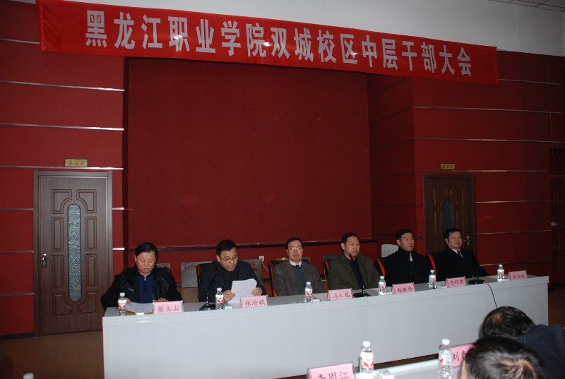 3月7日,学院在学府校区和双城校区分别召开干部大会,传达了省政府《关于黑龙江科技职业学院并入黑龙江工商职业技术学院并更名为黑龙江职业学院的批复》(黑政函〔2012〕14号)和相关文件。会上,学院党委书记冯玉龙、院长赵继会做了重要讲话。