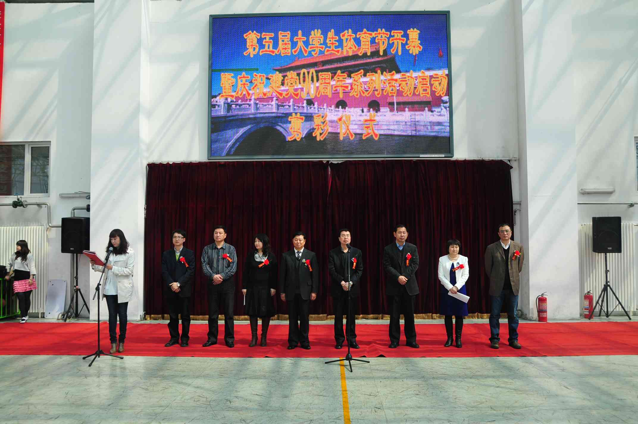 4月12日,学院第五届大学生体育节开幕暨庆祝建党90周年系列活动启动剪彩仪式在校园文化活动中心举行。党委书记冯玉龙、院长赵继会、党委副书记张玉山出席了剪彩仪式。学院有关部门负责人、各二级学院学管副院长、团总支书记以及学生代表近500余人参加了活动。