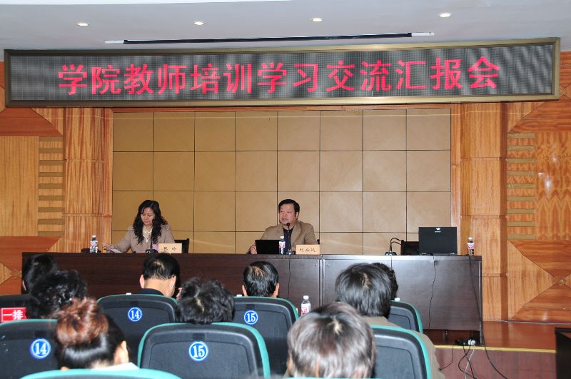 11月10日,学院召开了2010年学院教师培训学习交流汇报会。学院党委书记冯玉龙,院长赵继会,副院长何承贵、刘公远,党委副书记张玉山,副院长郑福贵,教务长何莉以及各部门负责人、部分教师与校企合作单位代表共200余人参加了会议。会议由教务处处长张玲主持。