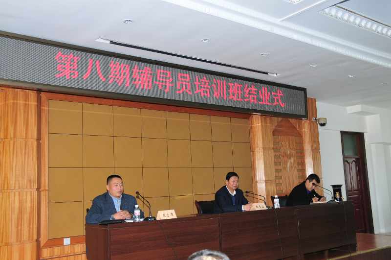 党委副书记张玉山同志出席培训班结业式并对此次培训工作做了总结讲话。张玉山副书记结合学院辅导员工作现状分析了辅导员队伍建设的有关问题并提出了下一步学习要求,他指出,本次辅导员培训班是在各级部门思想重视的基础上进行的,学生处、团委和各系细致安排、周密组织,使培训研讨结果能够学用结合,培训十分效果突出。他强调,加强辅导员培训工作是加强辅导员队伍建设、提升辅导员育人能力和工作水平的重要保障,辅导员要提高认识,进一步明确角色定位、工作定位、工作职责和素质要求。通过培训,要进一步增强“以学生为本”的管理理念,提高辅导员的思想素质和政治觉悟。辅导员要规范工作程序,拓宽工作思路,全面提高工作能力和综合素质,达到“政治强、业务精、纪律严、作风正”的目标要求,认真履行岗位职责,在学生管理中做实“严、精、实、效、好、爱、情、细、育、高”十个字,做到狠抓“四率”不放松、狠抓稳定不松手、狠抓安全不马虎,认真做好“三型”辅导员,学生管理工作才能与时俱进,才能保证学生健康成长。