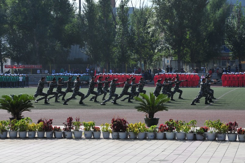 会上,六五四二六部队副参谋长金辉同志作了讲话,学生24个方队进行了分列式表演,10个系各派一个方队表演了捕俘拳,并各派一名学生表演了内务整理,全体教官为大会作了捕俘拳及擒拿表演。整个会议井然有序,表演一个接一个,一环扣一环,场内不时响起阵阵掌声和欢呼声。