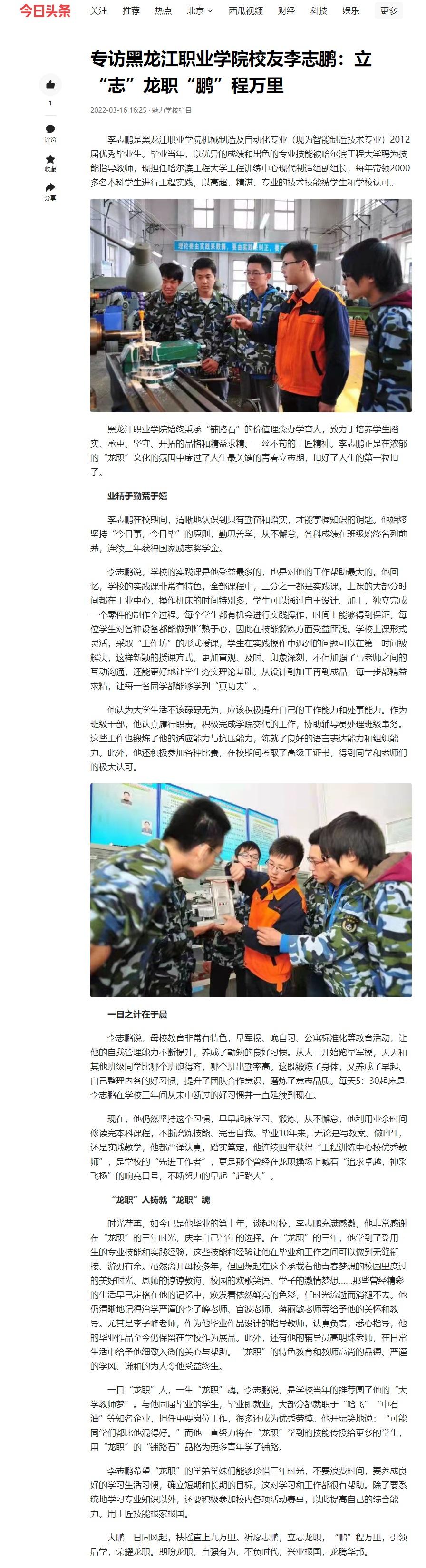 上一篇:【搜狐】专访黑龙江职业学院校友李志鹏:立“志”龙职“鹏”程万里