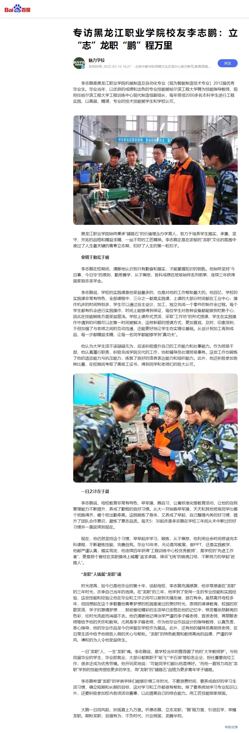 下一篇:【一点资讯】专访黑龙江职业学院校友李志鹏:立“志”龙职“鹏”程万里