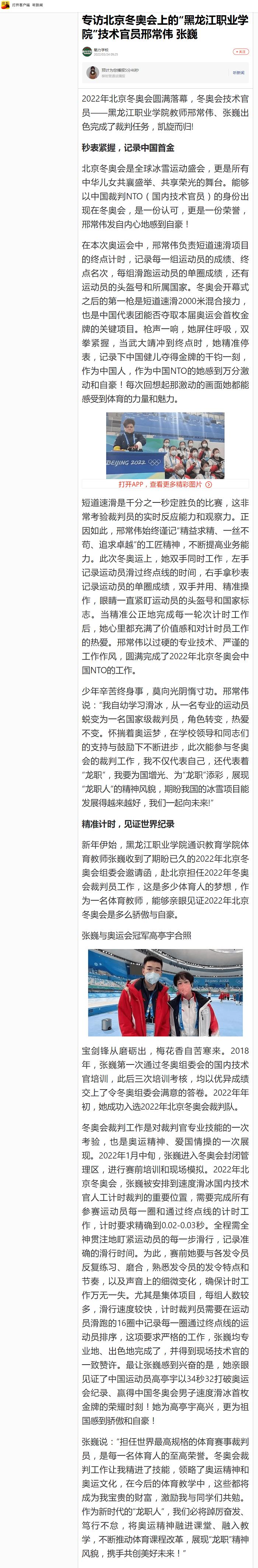 下一篇:【今日头条】专访北京冬奥会上的“黑龙江职业学院”技术官员邢常伟 张巍