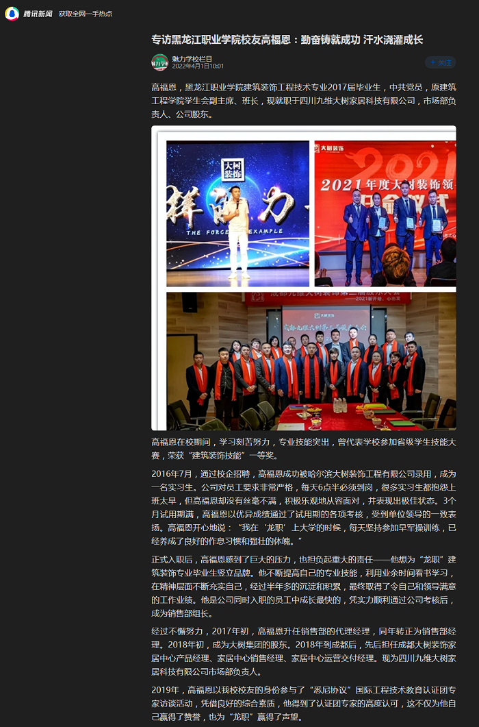 下一篇:【搜狐】专访黑龙江职业学院校友高福恩:勤奋铸就成功 汗水浇灌成长