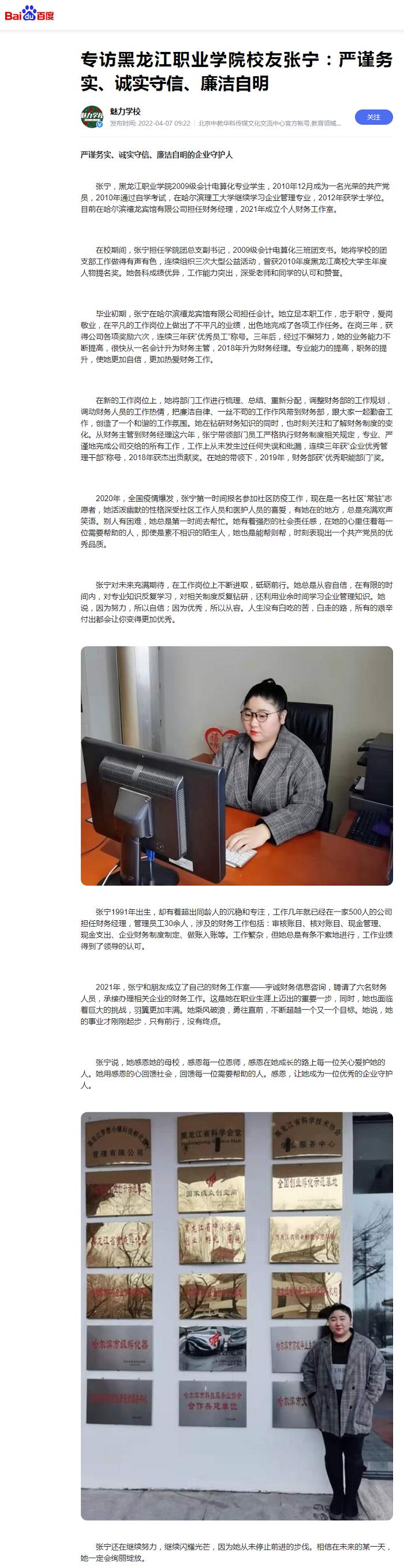 下一篇:【一点资讯】专访黑龙江职业学院校友张宁:严谨务实、诚实守信、廉洁自明