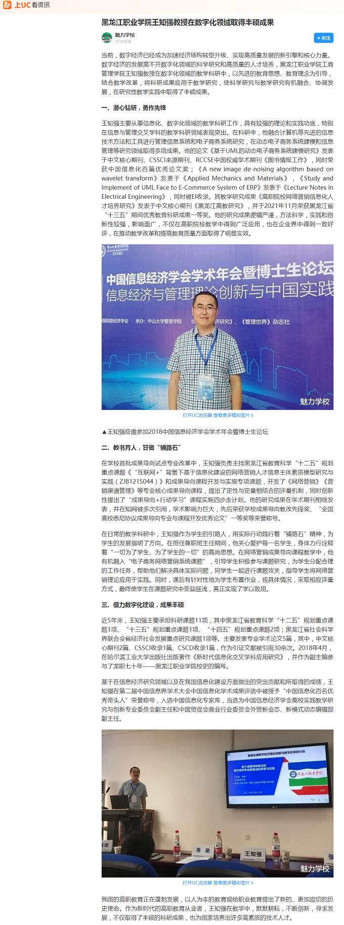 下一篇:【一点资讯】黑龙江职业学院王知强教授在数字化领域取得丰硕成果