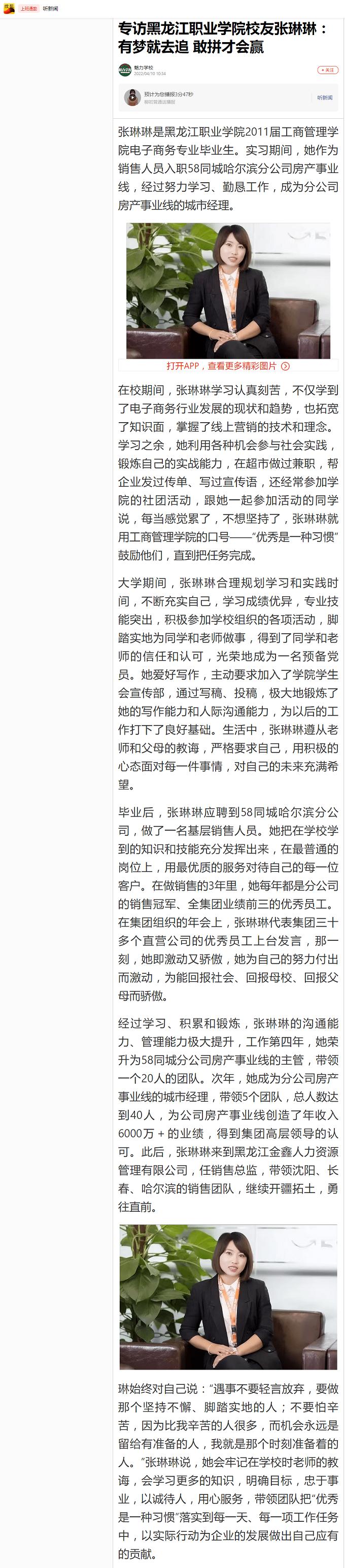 下一篇:【今日头条】专访黑龙江职业学院校友张琳琳:有梦就去追 敢拼才会赢