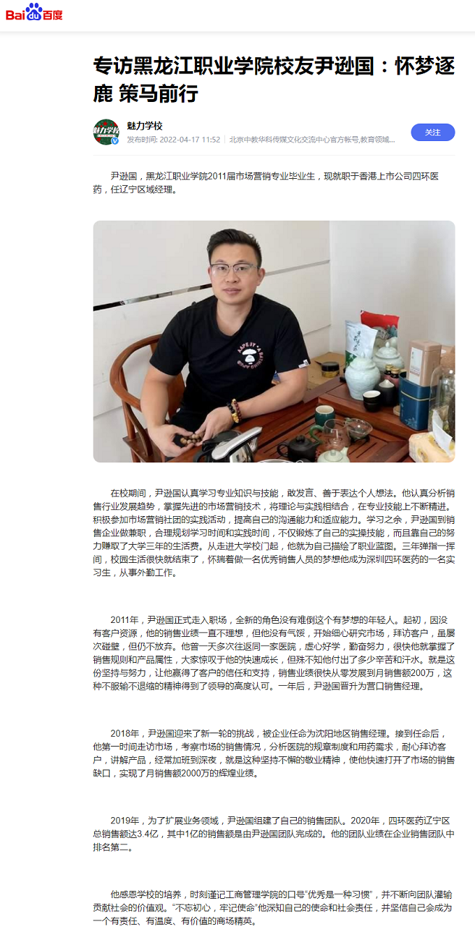 上一篇:【今日头条】专访黑龙江职业学院校友尹逊国:怀梦逐鹿 策马前行