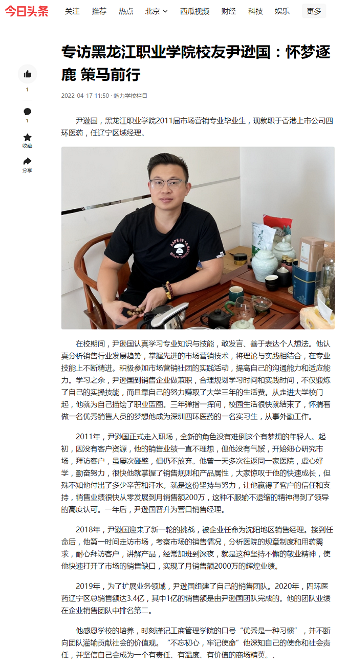 上一篇:【搜狐】专访黑龙江职业学院校友尹逊国:怀梦逐鹿 策马前行