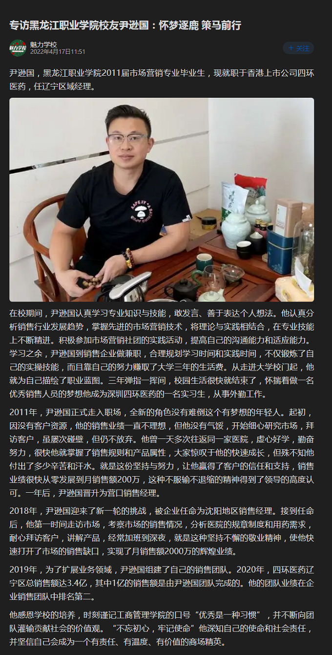 上一篇:【网易】专访黑龙江职业学院校友尹逊国:怀梦逐鹿 策马前行