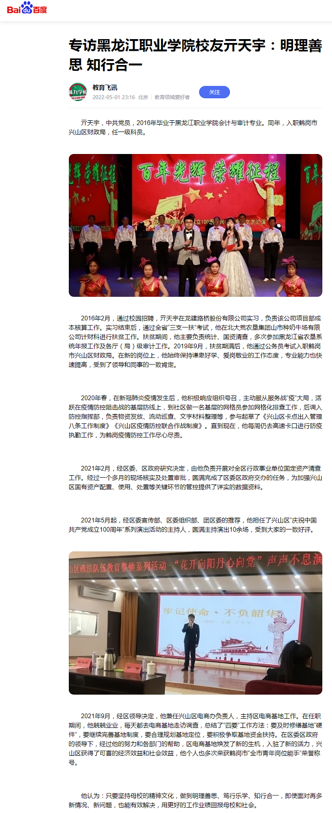 【百度】专访黑龙江职业学院校友亓天宇:明理善思 知行合一