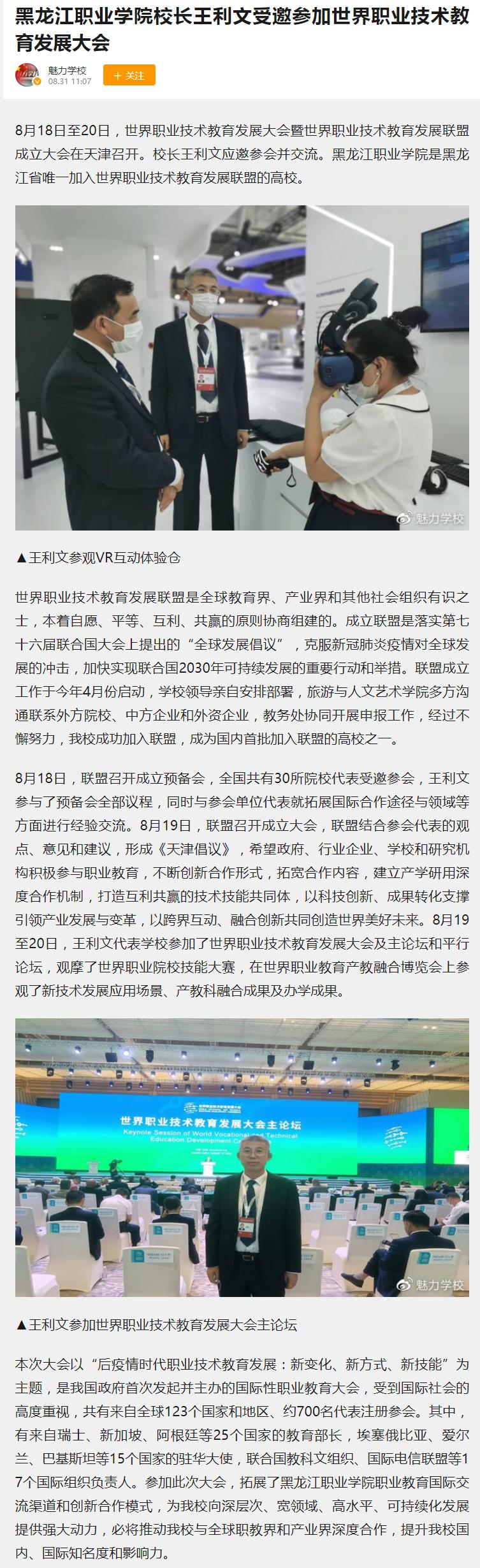 下一篇:【网易新闻】黑龙江职业学院校长王利文受邀参加世界职业技术教育发展大会