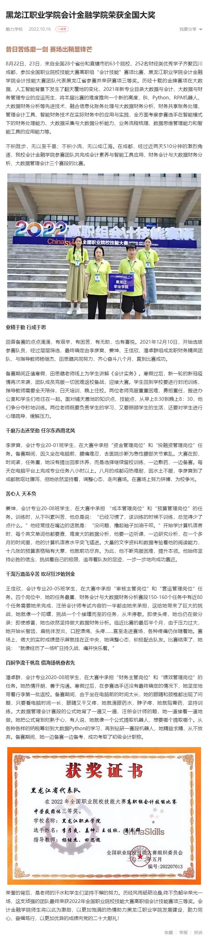 【UC】黑龙江职业学院会计金融学院荣获全国大奖
