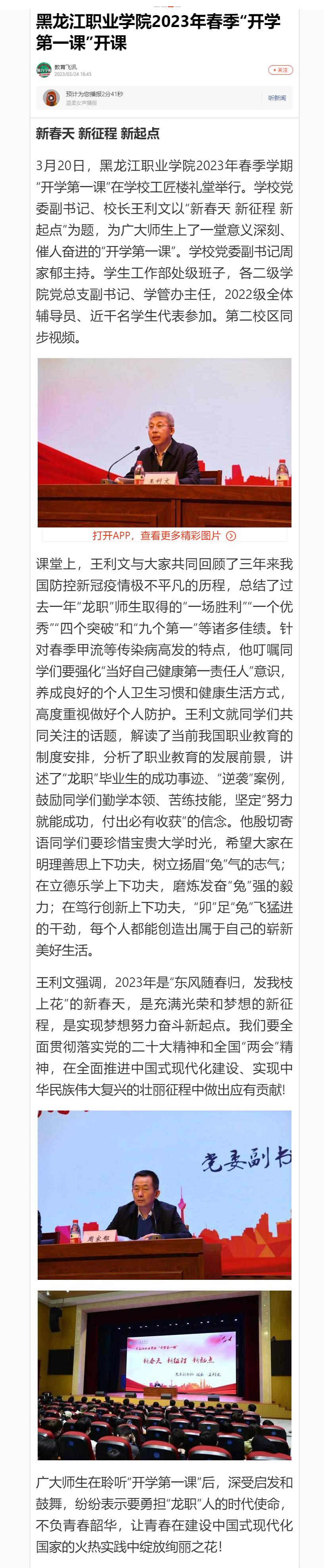 上一篇:【新浪】黑龙江职业学院2023年春季“开学第一课”开课