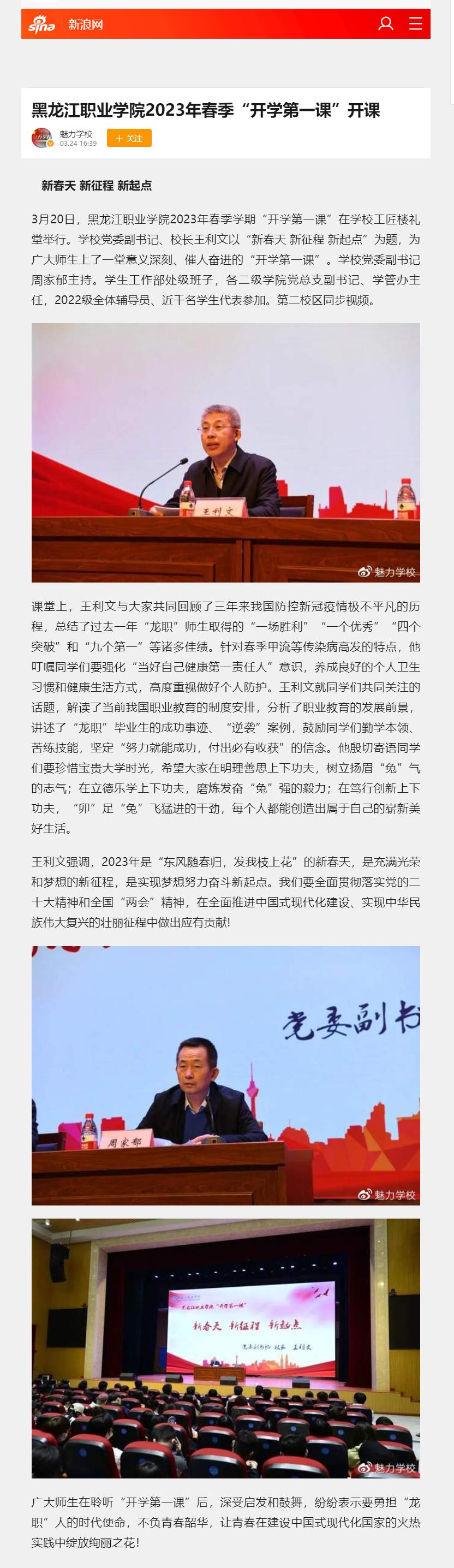下一篇:【搜狐新闻】黑龙江职业学院2023年春季“开学第一课”开课