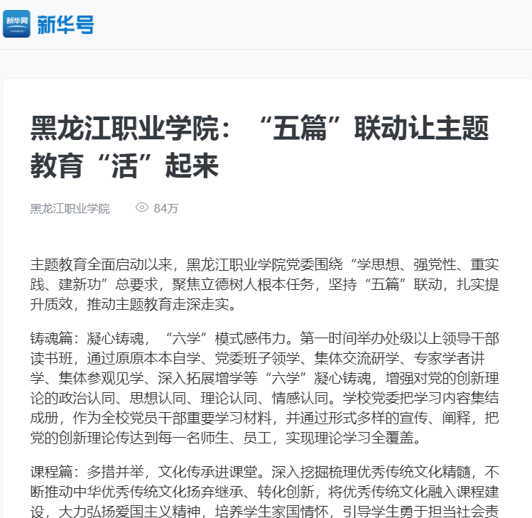 下一篇:【黑龙江省教育厅】黑龙江职业学院“五篇”联动让主题教育“活”起来
