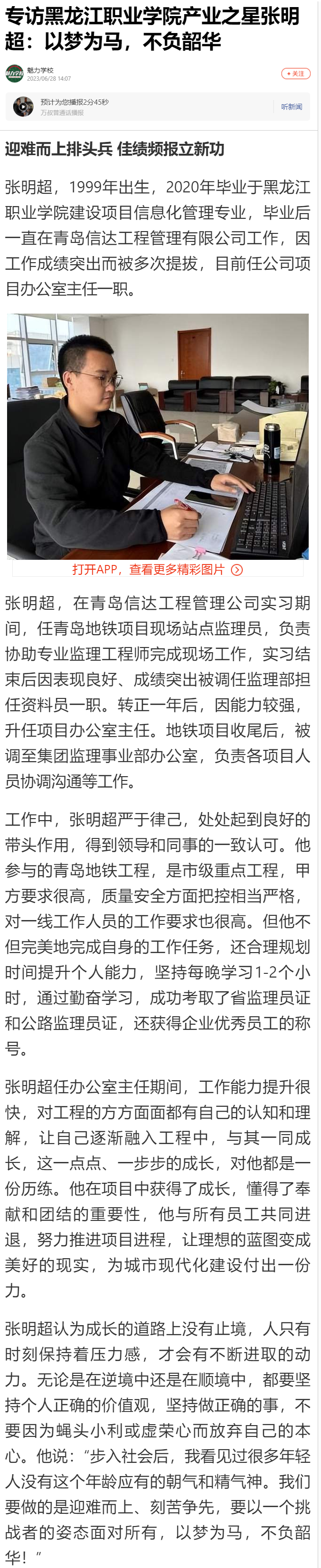 上一篇:【网易新闻】专访黑龙江职业学院产业之星张明超:以梦为马,不负韶华