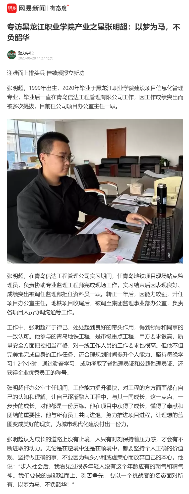 下一篇:【搜狐新闻】专访黑龙江职业学院产业之星张明超:以梦为马,不负韶华