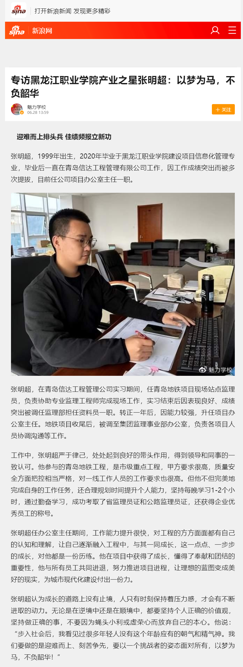 下一篇:【网易新闻】专访黑龙江职业学院产业之星张明超:以梦为马,不负韶华