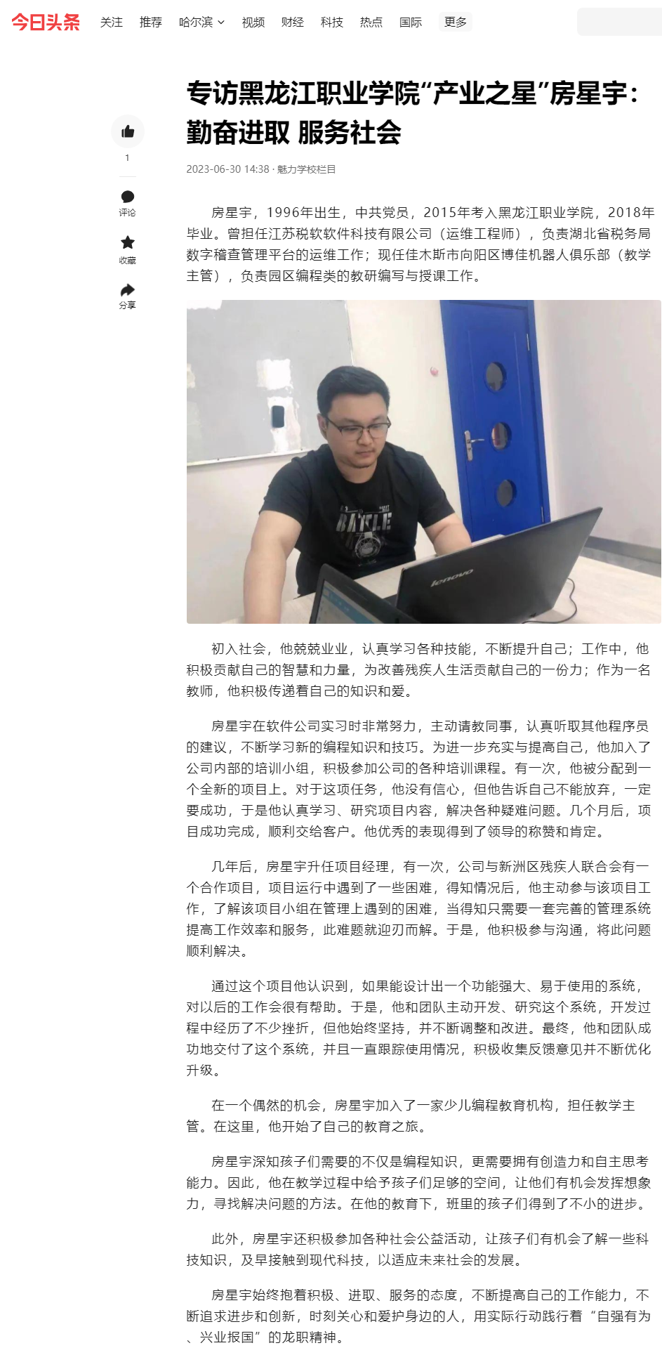 下一篇:【百度】专访黑龙江职业学院“产业之星”房星宇:勤奋进取 服务社会