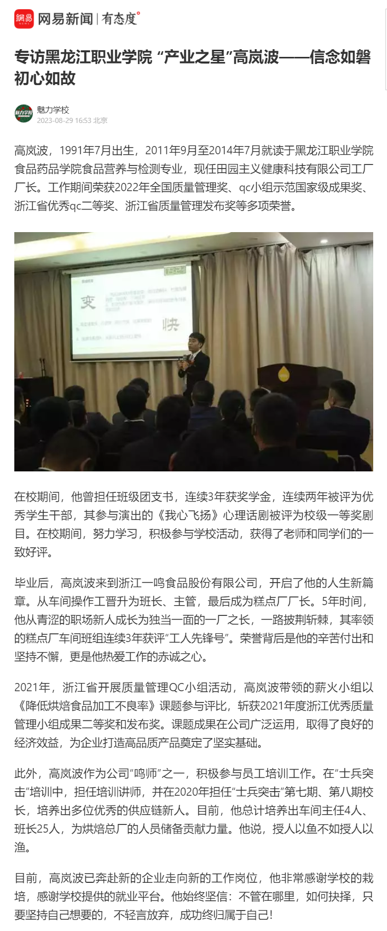 上一篇:【新浪新闻】专访黑龙江职业学院 “产业之星”高岚波——信念如磐 初心如故