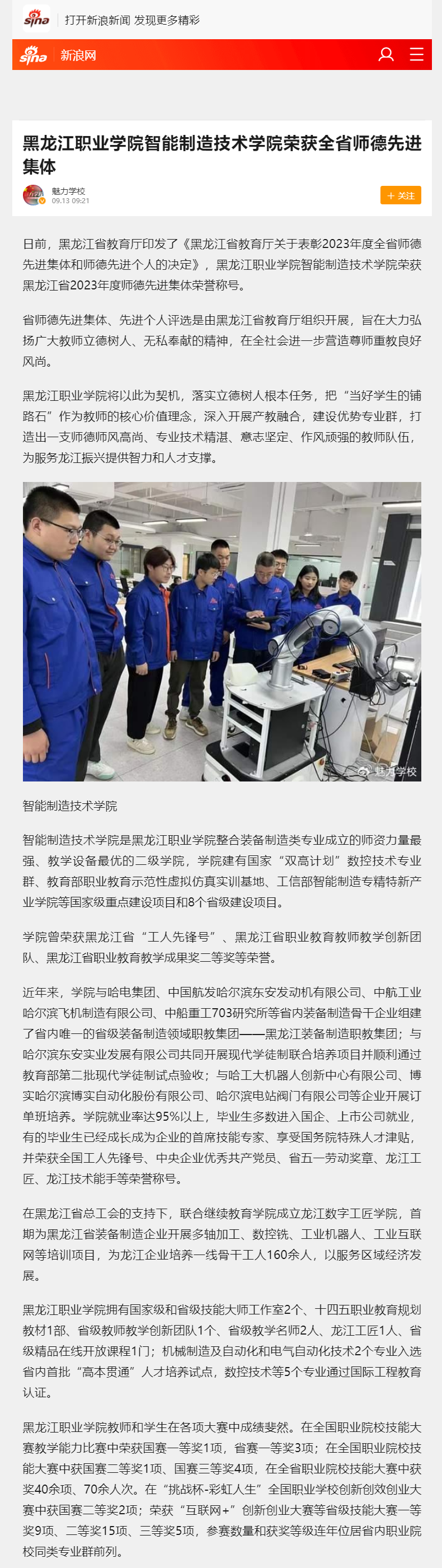 下一篇:【搜狐新闻】黑龙江职业学院智能制造技术学院荣获全省师德先进集体
