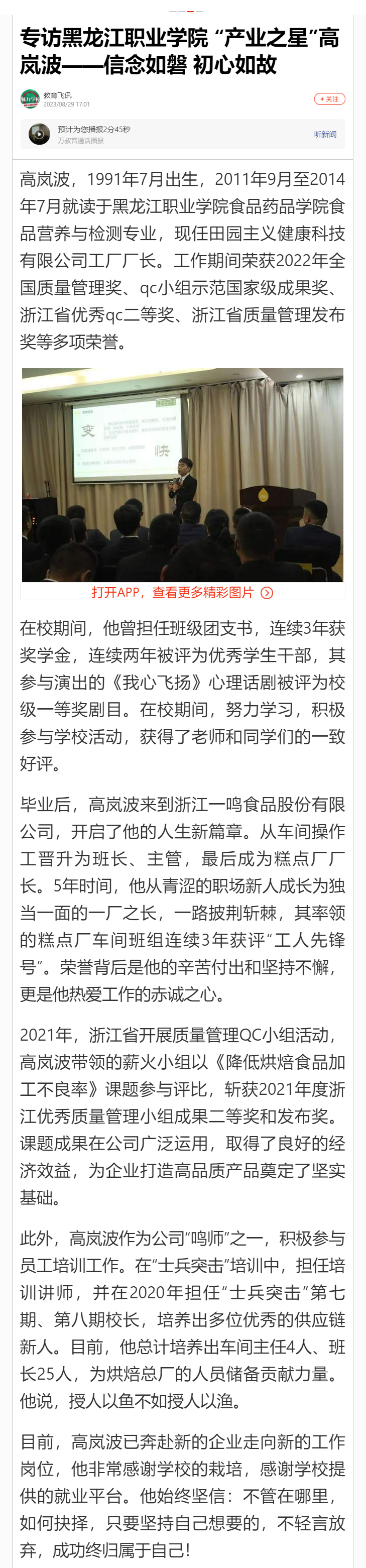 下一篇:【今日头条】专访黑龙江职业学院 “产业之星”高岚波——信念如磐 初心如故