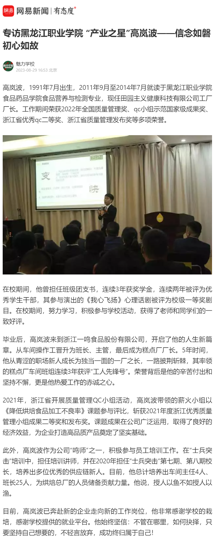 上一篇:【新浪新闻】专访黑龙江职业学院 “产业之星”高岚波——信念如磐 初心如故