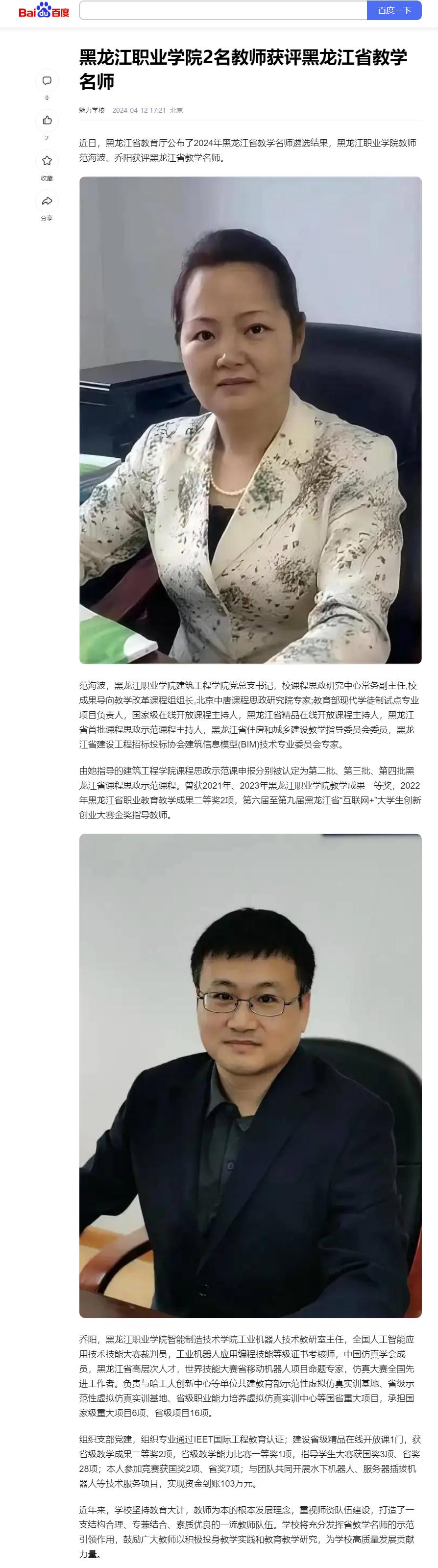 【百度新闻】黑龙江职业学院2名教师获评黑龙江省教学名师