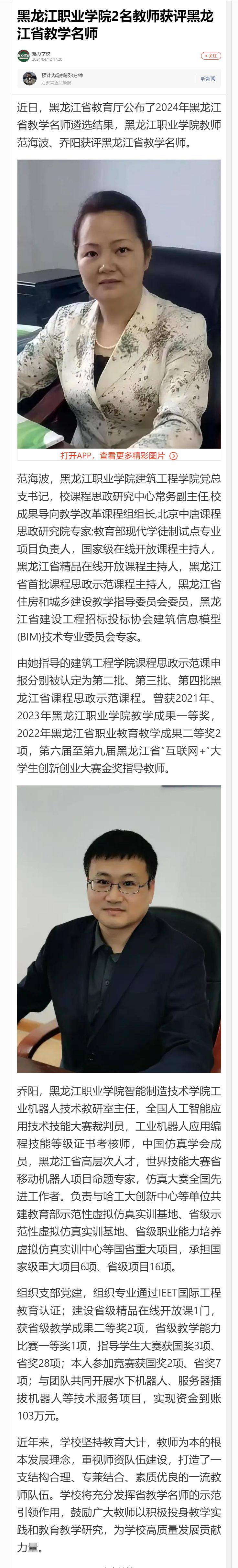 【搜狐新闻】黑龙江职业学院2名教师获评黑龙江省教学名师