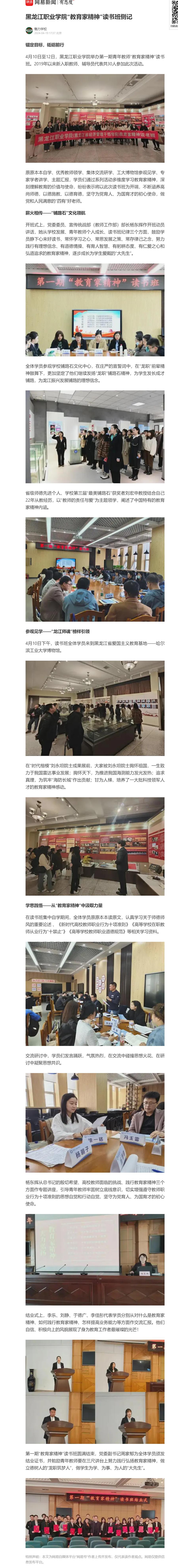 【网易新闻】黑龙江职业学院“教育家精神”读书班侧记
