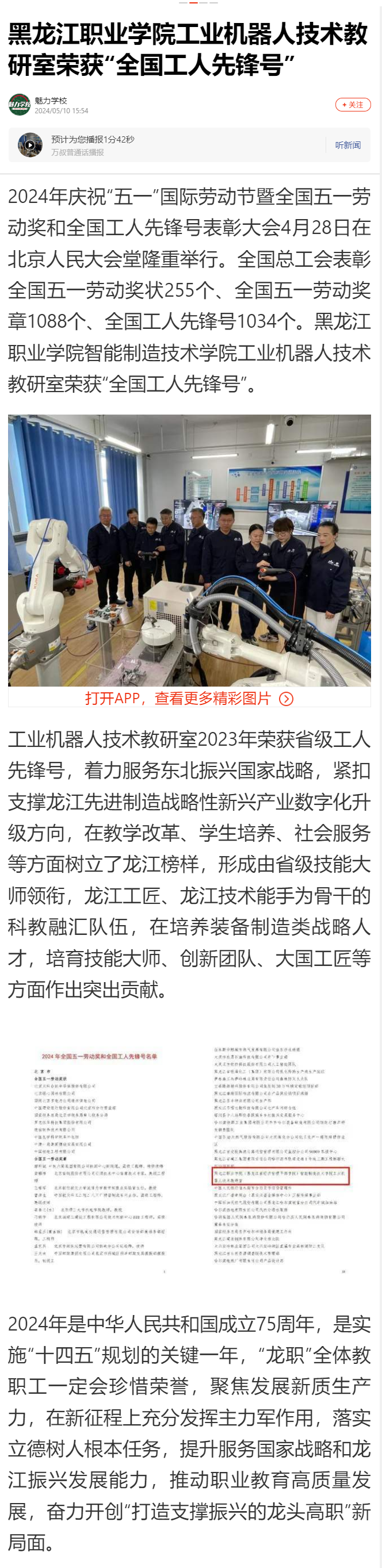下一篇:【百度新闻】黑龙江职业学院工业机器人技术教研室荣获“全国工人先锋号”
