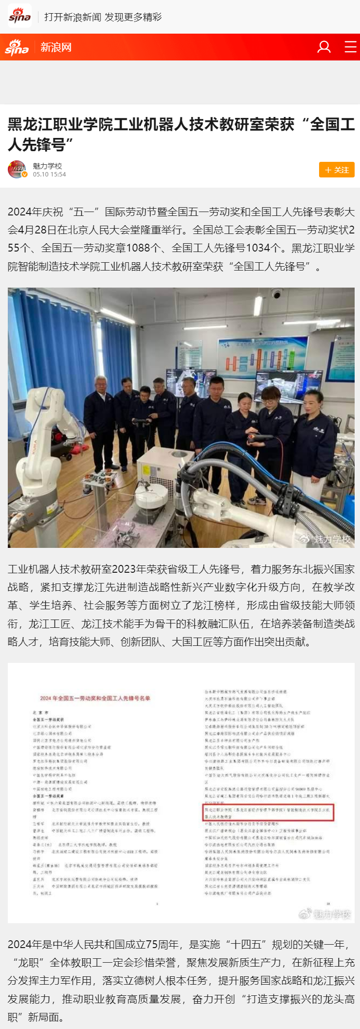 下一篇:【搜狐新闻】黑龙江职业学院工业机器人技术教研室荣获“全国工人先锋号”