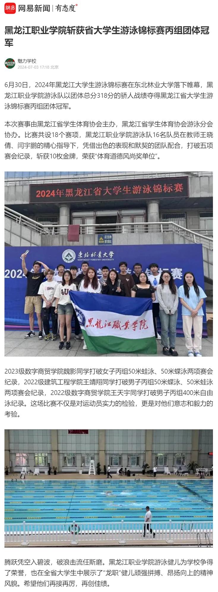 下一篇:【腾讯新闻】黑龙江职业学院斩获省大学生游泳锦标赛丙组团体冠军