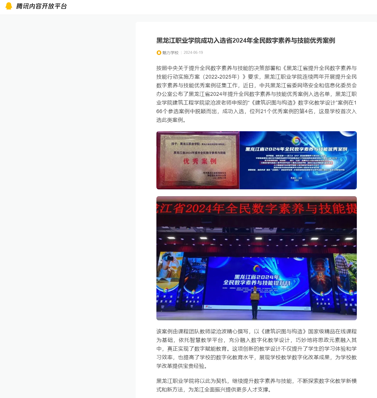 下一篇:【搜狐新闻】黑龙江职业学院成功入选省2024年全民数字素养与技能优秀案例