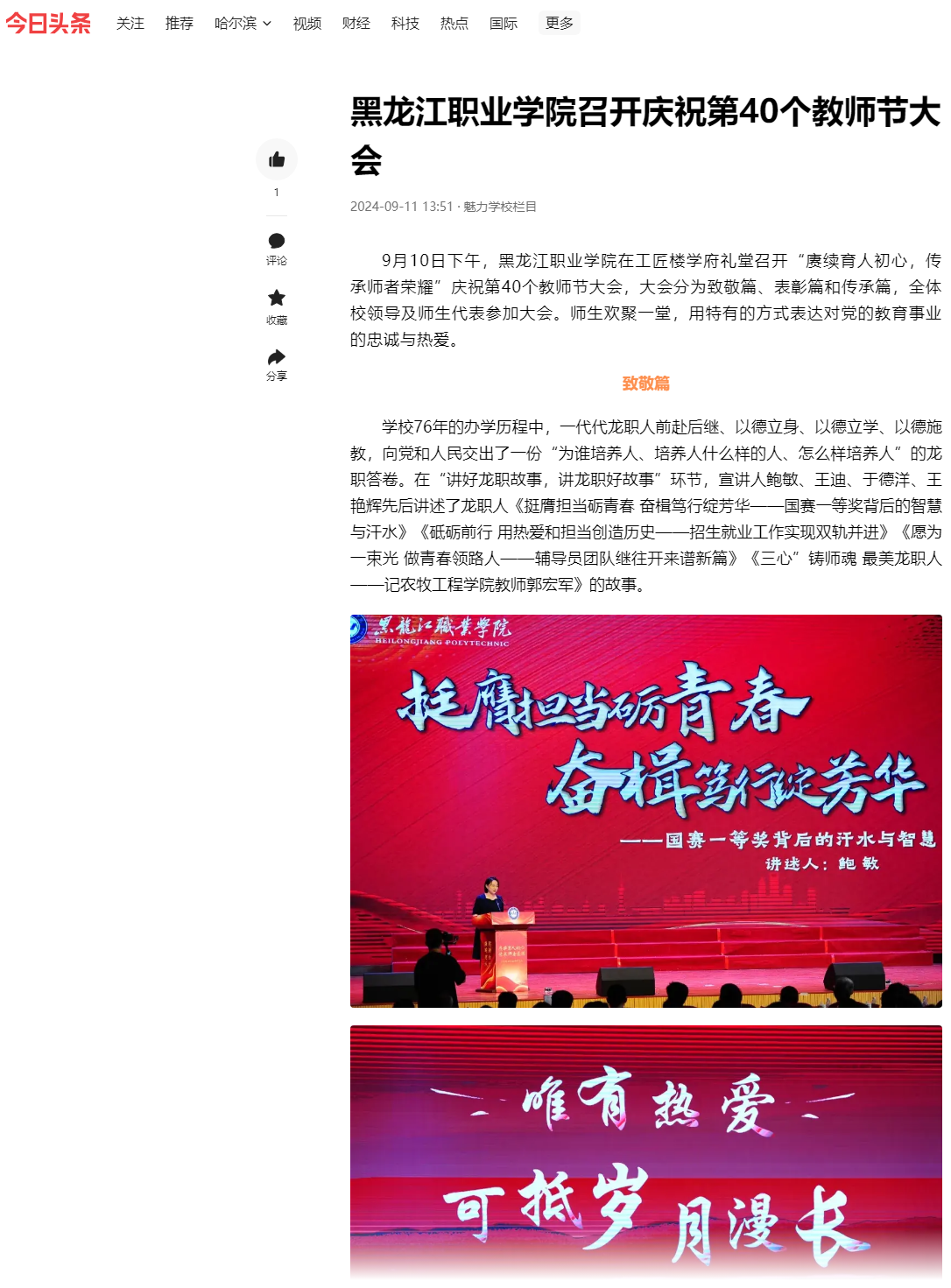 【今日头条】黑龙江职业学院召开庆祝第40个教师节大会