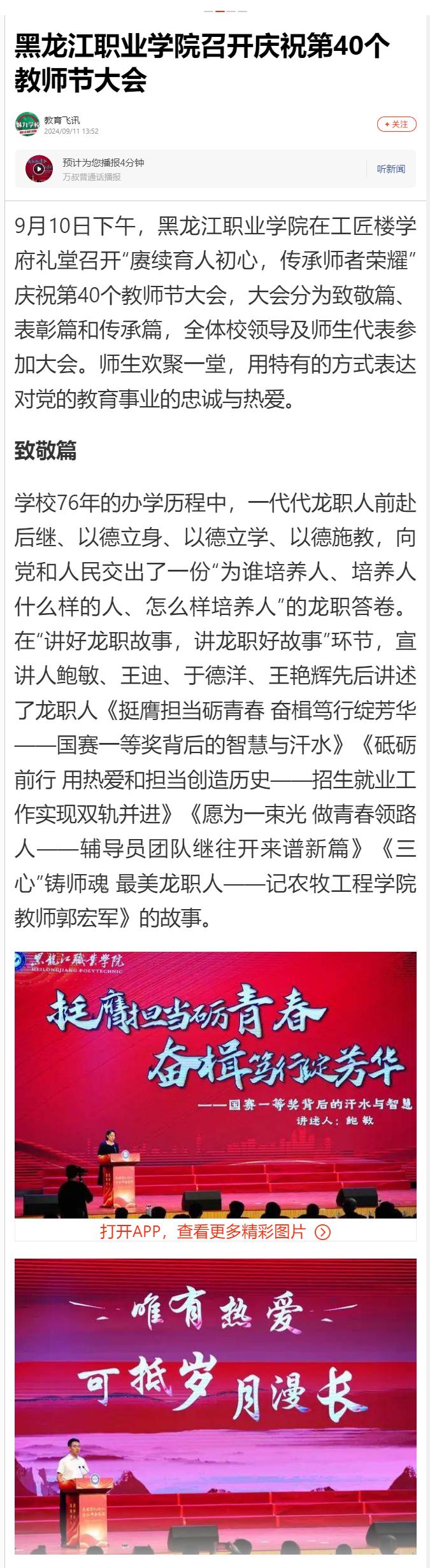 【今日头条】黑龙江职业学院召开庆祝第40个教师节大会