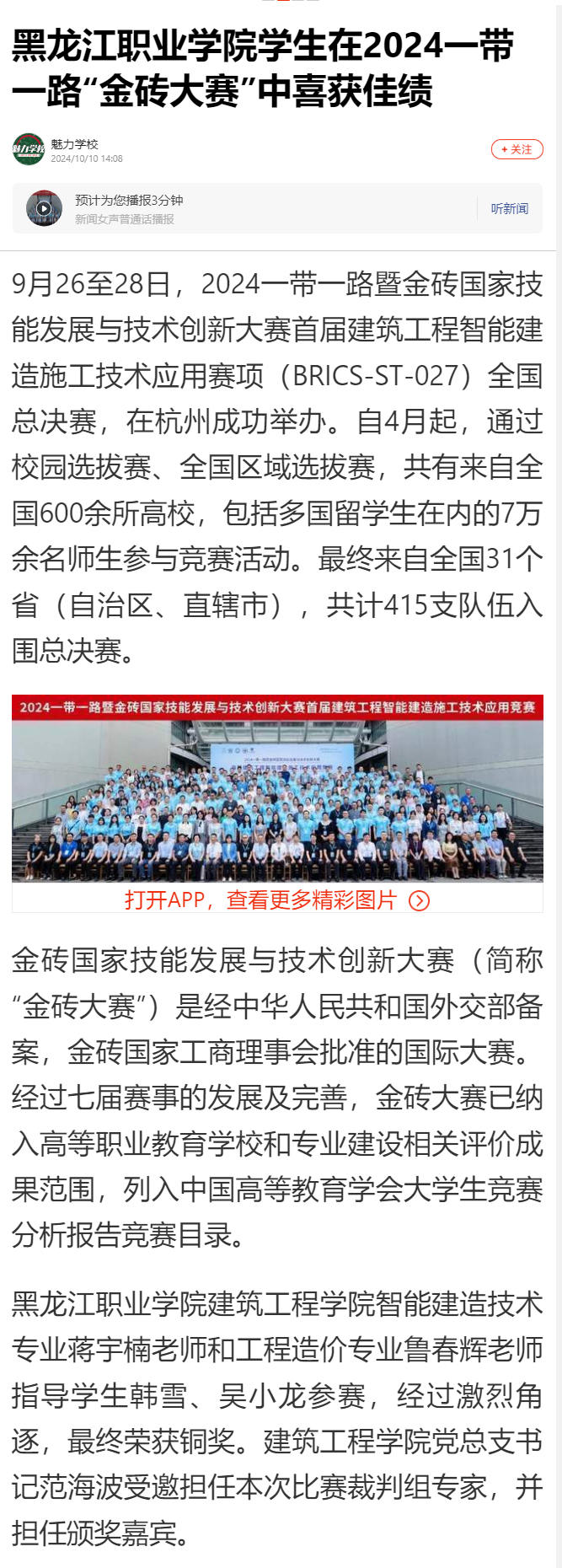 上一篇:【腾讯新闻】黑龙江职业学院学生在2024一带一路“金砖大赛”中喜获佳绩