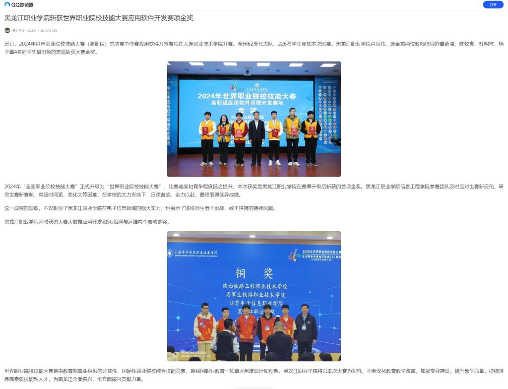 下一篇:【一点资讯】黑龙江职业学院斩获世界职业院校技能大赛应用软件开发赛项金奖