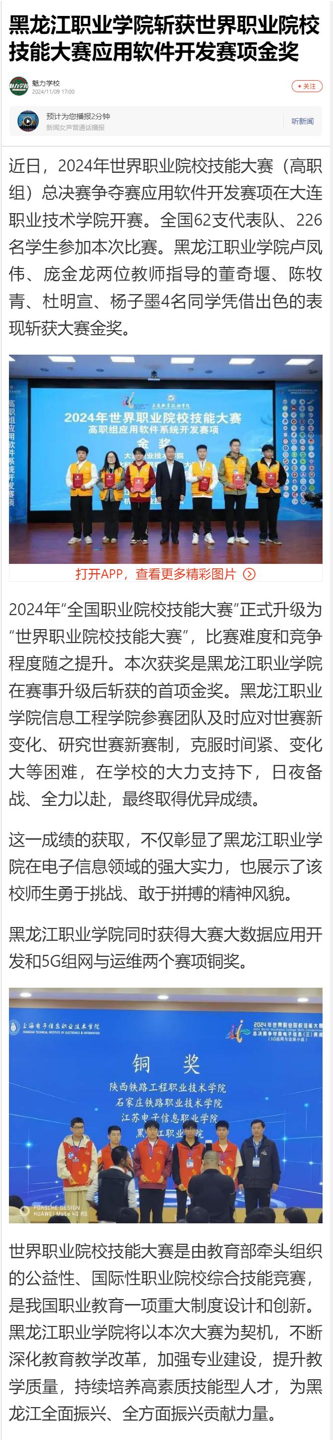 上一篇:【网易新闻】黑龙江职业学院斩获世界职业院校技能大赛应用软件开发赛项金奖